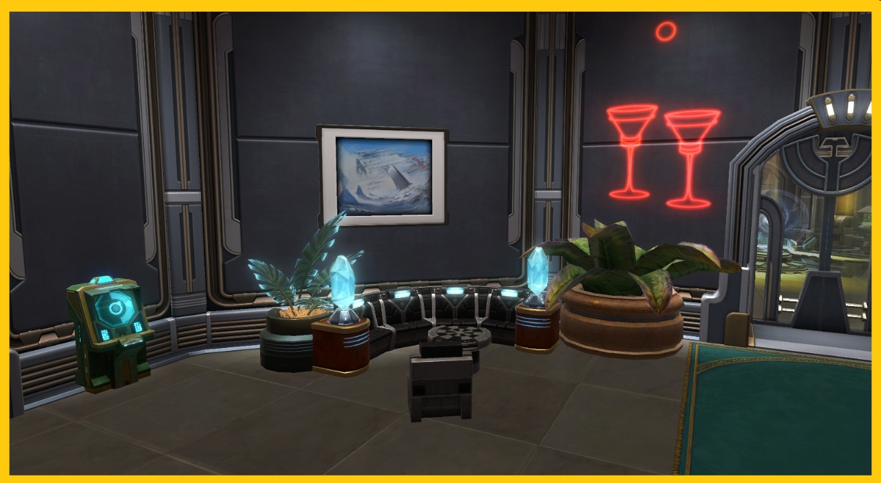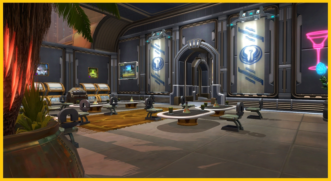 Einfach mal zwischen den ganzen Raumreisen oder harten Verhandlungsgesprächen abschalten? Ab in die große Cantina! Ob Sabbac, Pazaak, Hutpok oder interessante Leute bei einem kühlen Drink kennen lernen, hier sind sie richtig.