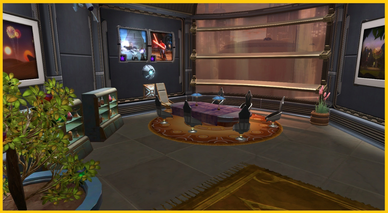 Haben sie ein Meeting mit ihrer group? Oder müssen mir ihrer Crew einen Auftrag planen? Dann ist unser Konferenzraum genau das richtige für Sie! Holoprojektor, Holonet-Anbindung, touchwall uvm. bei schönem Ambiente.